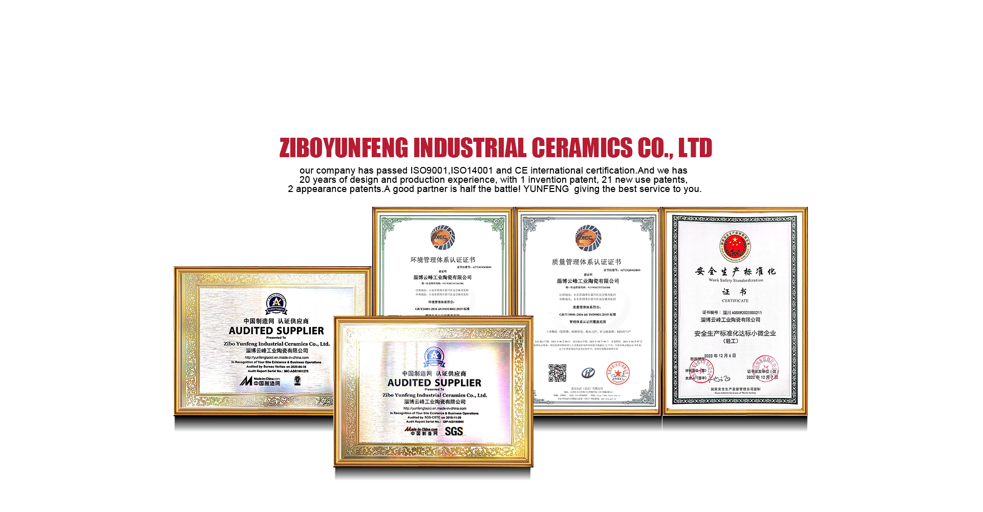 Zibo Yunfeng Industrial Ceramics Co., Ltd., founded in 2001, is located in Zichuan, Shandong Province, the former residence of Pu Songling, the king of short stories in the world. The company has strong technical force, rich manufacturing experience, complete production equipment and advanced manufacturing technology. From leaders to employees, the company has developed a number of advanced products: structural ceramics and functional ceramics.